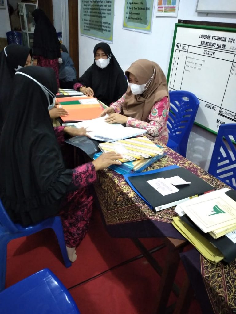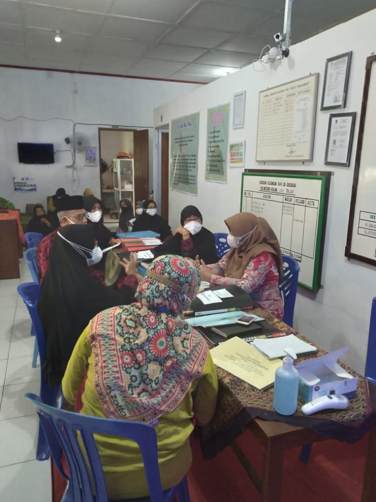 - Wawancara Ibu Suhartatik dengan beberapa pengurus serta penyajian dokumen dokumen yang diperlukan. Ibu Nita Anita menilai semua bagan dan daftar dinding yang ada