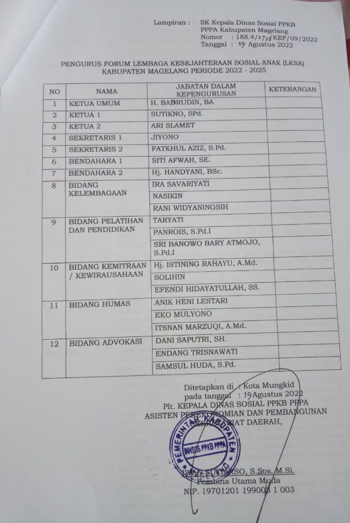 Berikut Sususan Pengurus Forda LKSA Kab Magelang Periode 2022-2025