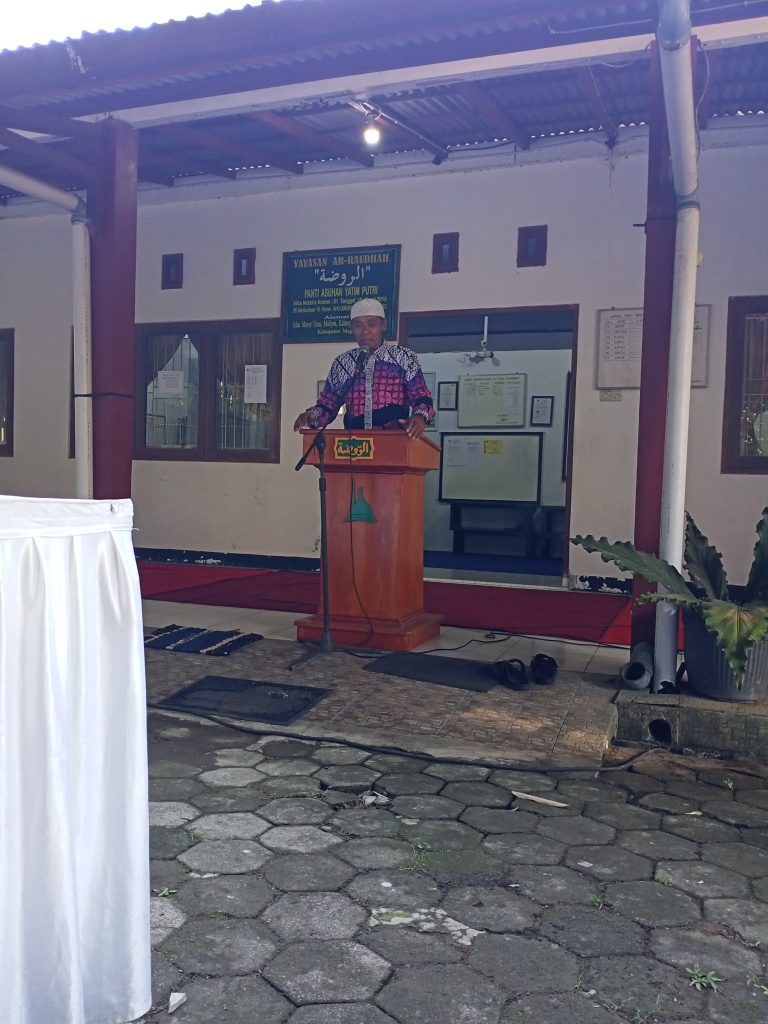 Halal- bihalal diisi oleh anak-anak panti asuhan yatim putri Ar-Raudhah dan di buka oleh ibu Hj. Handayani selaku ketua panti asuhan serta tausiyah dari bapak, H. bahrudin.