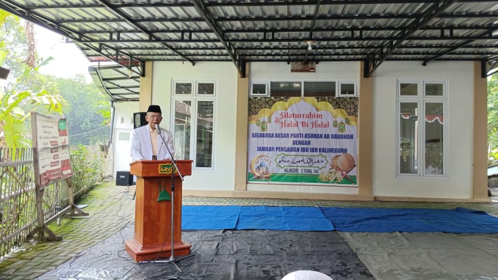 Di laksanakannya halal bihalal dengan diisi pembacaan Al-Quran dari Anak-anak Panti sambutan dari Bapak Hajid Mulyoni, selaku kepala desa Kalinegoro, Ketua Panti sekaligus ketua Pengajian Ibu-ibu muslim kalinegoro Ibu Hj Handayani dan ketua panitia Bp. KH MF Asyhari yang juga ketua Yayasan Ar- Raudhah.