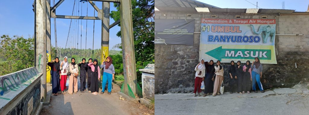 Anak-anak berolahraga jalan kaki yang dilanjutkan menuju pemandian air hangat Umbul Banyuroso Tempuran yang jaraknya cukup dekat dengan panti Ar Raudhah, hanya dengan menyebrangi jembatan gantung sudah samapai di Tempuran.