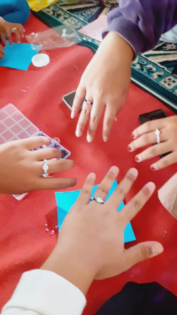 hasil cincin yang di ajarkan mbak sasta nampak anak-anak menyukai hasilnya.